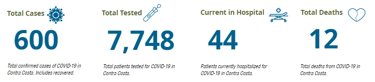 Contra Costa is now reporting 600 confirmed cases of coronavirus in the county, which is 48 more than yesterday. That is the single largest daily increase in the county since the outbreak started.