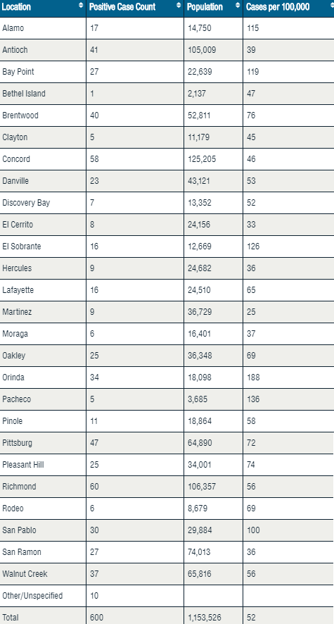 Below is a city-by-city breakdown of coronavirus cases for Contra Costa County: