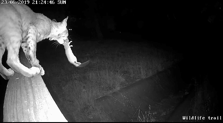 Thanks to Kath for this video, which shows a bobcat in Clayton with a fresh catch.