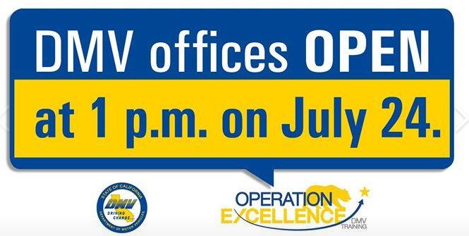 The California Department of Motor Vehicles (DMV) will close its offices statewide for a half day on July 24, 2019, to “better prepare employees to process REAL ID transactions and reinforce training on providing excellent customer service.”