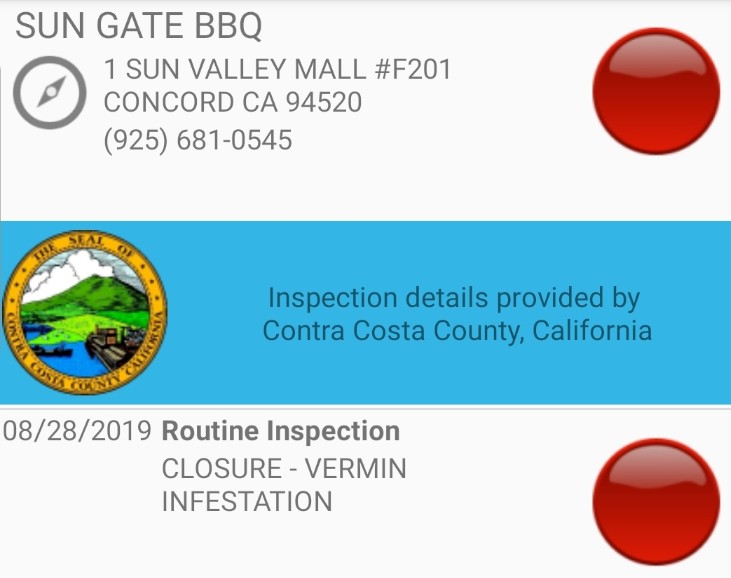Sun Gate Mongolian BBQ, located inside the Sunvalley Mall in Concord, was closed this week after inspectors from the Contra Costa County Health Department say they found the following.