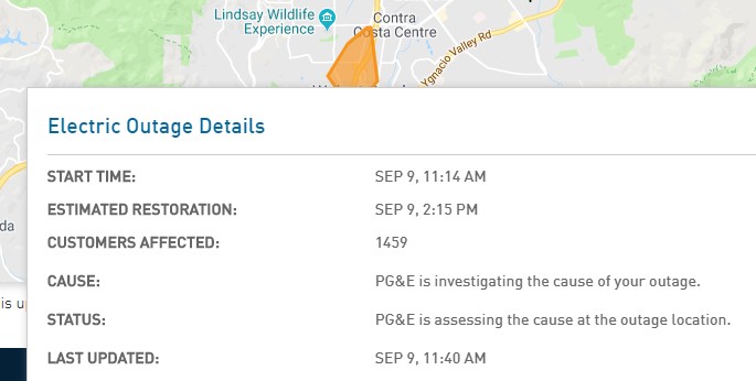 About 1,500 people are without power along N. Main St. between Treat Blvd. and Ygnacio Valley Rd. in Walnut Creek this afternoon.