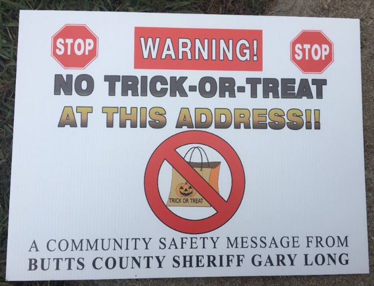 A county sheriff in Georgia has placed community safety message signs at the homes of registered sex offenders, warning the public to not trick-or-treat at that home on Halloween.