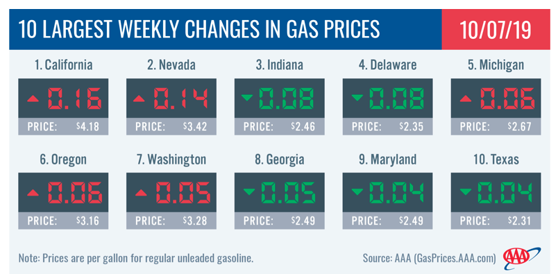 “All regions are seeing planned and unplanned refinery maintenance, but it is only the West Coast that is really seeing gasoline stocks tighten and gas prices increase,” said Jeanette Casselano, AAA spokesperson. “On the whole, we are seeing gasoline demand mostly push lower amid stable, but healthy gasoline stock levels which are ultimately keeping prices cheaper for most motorists.”