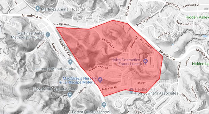 Due to rapid moving fire an immediate evacuation has been ordered for areas between Alhambra Avenue and Morello Avenue and between Vine Hill Way and Sunnybrae Drive in Martinez. Leave now and go towards Morello Avenue.