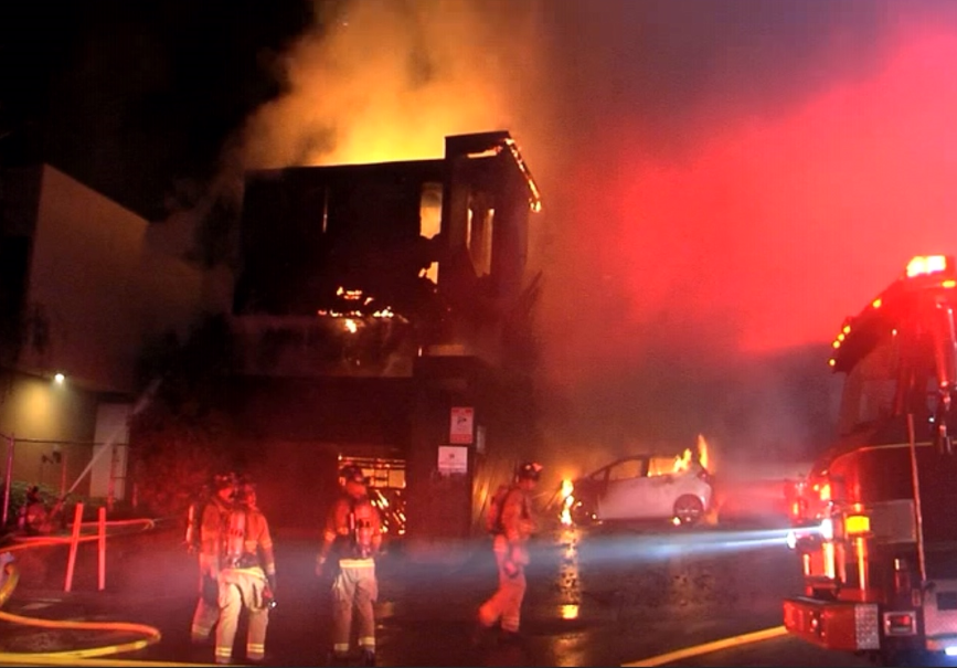 The blaze was extinguished by about 1 a.m.
