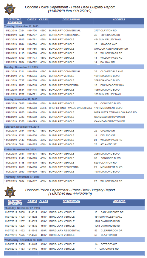 This is the Concord Police weekly burglary report. Please click on the image for a much larger view.