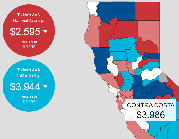 Gas is a buck or more cheaper in most states due to our insane gas formula flip-flop which happens twice a year, our insanely onerous regulations, and highest-in-the-nation gas taxes. And that High Speed Rail (to nowhere) aint getting no cheaper, either.