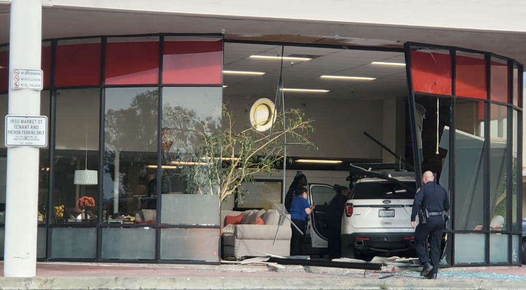 A driver slammed through the Furniture Today building at 1950 Market St. on Monday afternoon.