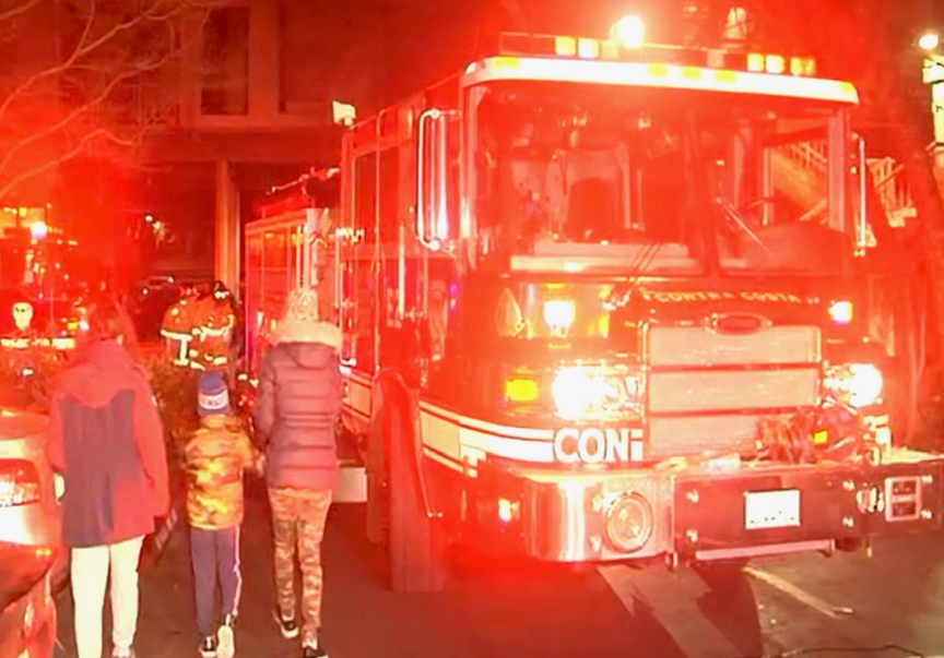The two-alarm blaze was reported about 5:30 a.m. at a third-level unit of The Keys condominiums, 410 N. Civic Drive, according to the Contra Costa County Fire Protection District.