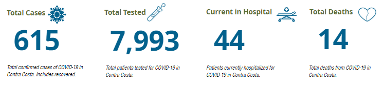 Contra Costa is now reporting 615 confirmed cases of coronavirus in the county, which is 15 more than yesterday.