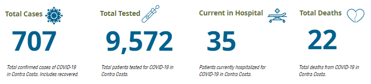 Contra Costa is now reporting 707 confirmed cases of coronavirus in the county, which is 14 more than yesterday.