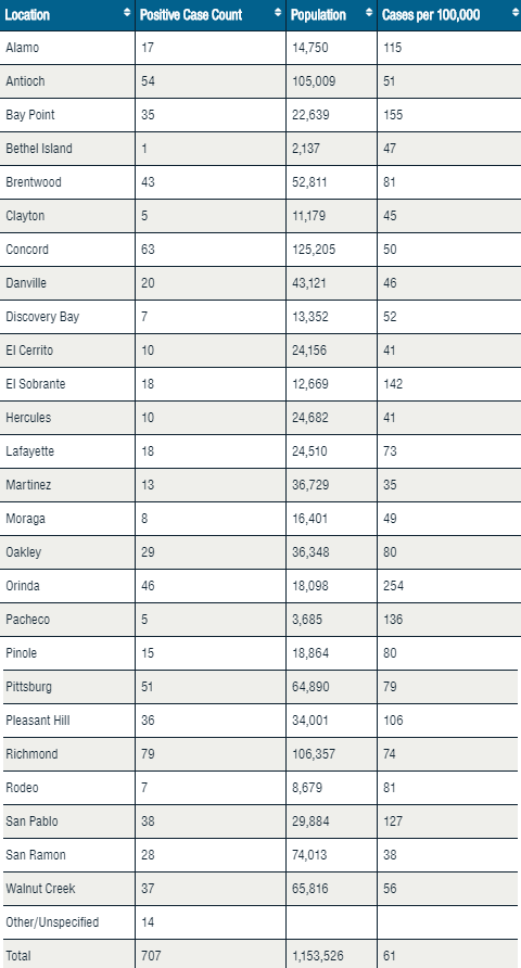 Below is a city-by-city breakdown of coronavirus cases for Contra Costa County: