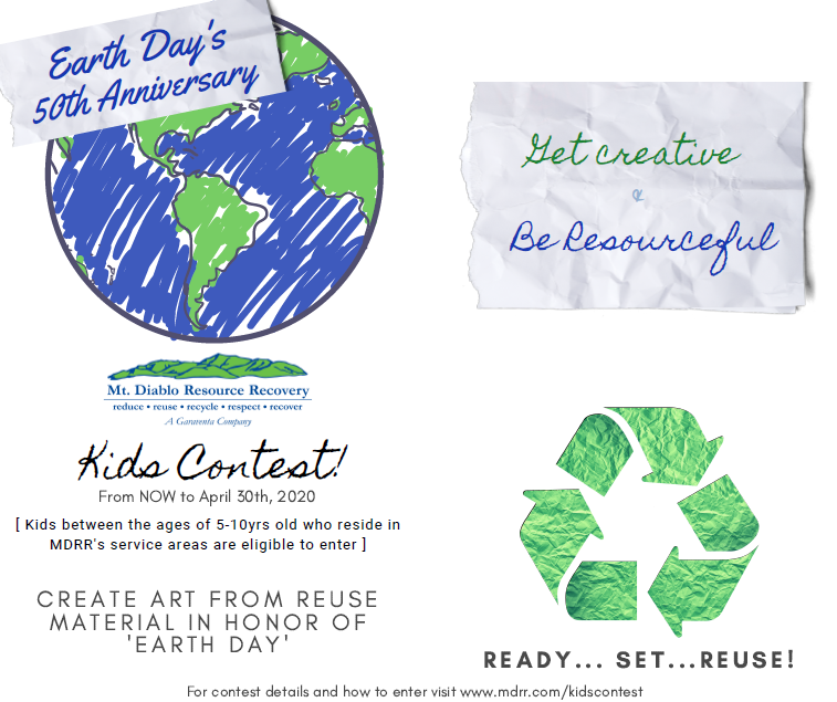 Mt. Diablo Resource Recovery is running an artwork contest for the month of April in celebration of Earth Day’s 50th Anniversary.