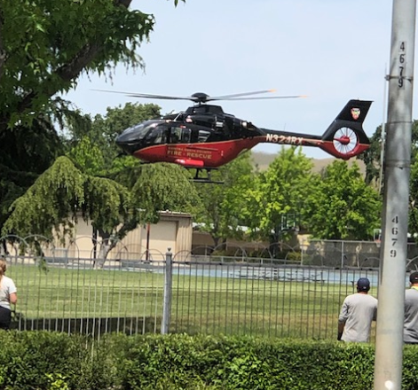 The helicopter landed just after 2 p.m. on the field of King’s Valley Christian School on Clayton Rd.