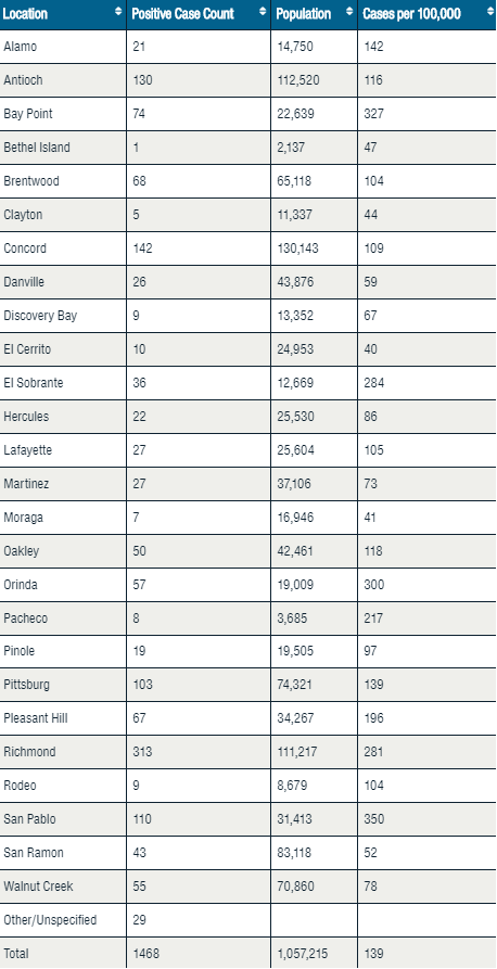 Below is a city-by-city breakdown of coronavirus cases for Contra Costa County: