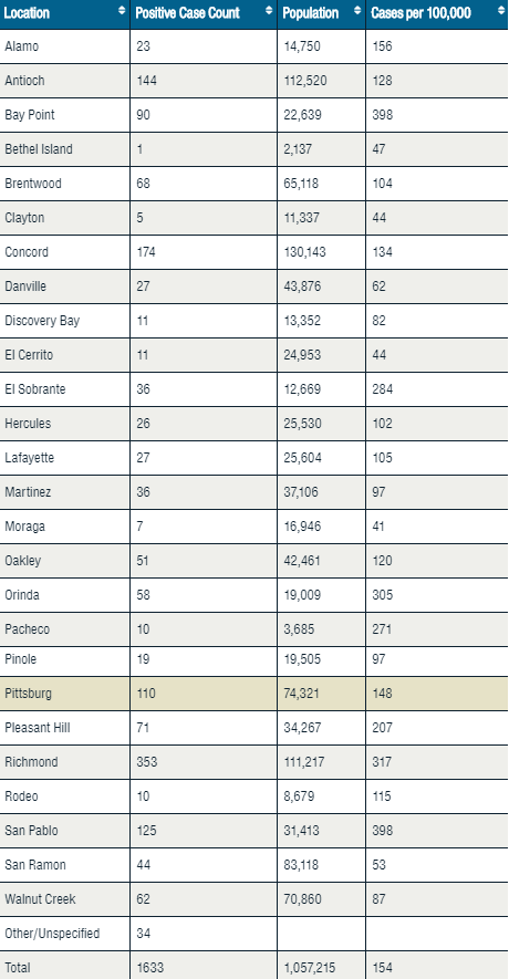 Below is a city-by-city breakdown of coronavirus cases for Contra Costa County: