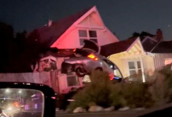I don’t think boulders would have stopped this car…. it flew up high enough to collide with the 2nd. story of the house. I wonder why story does not incrude the driver’s name?