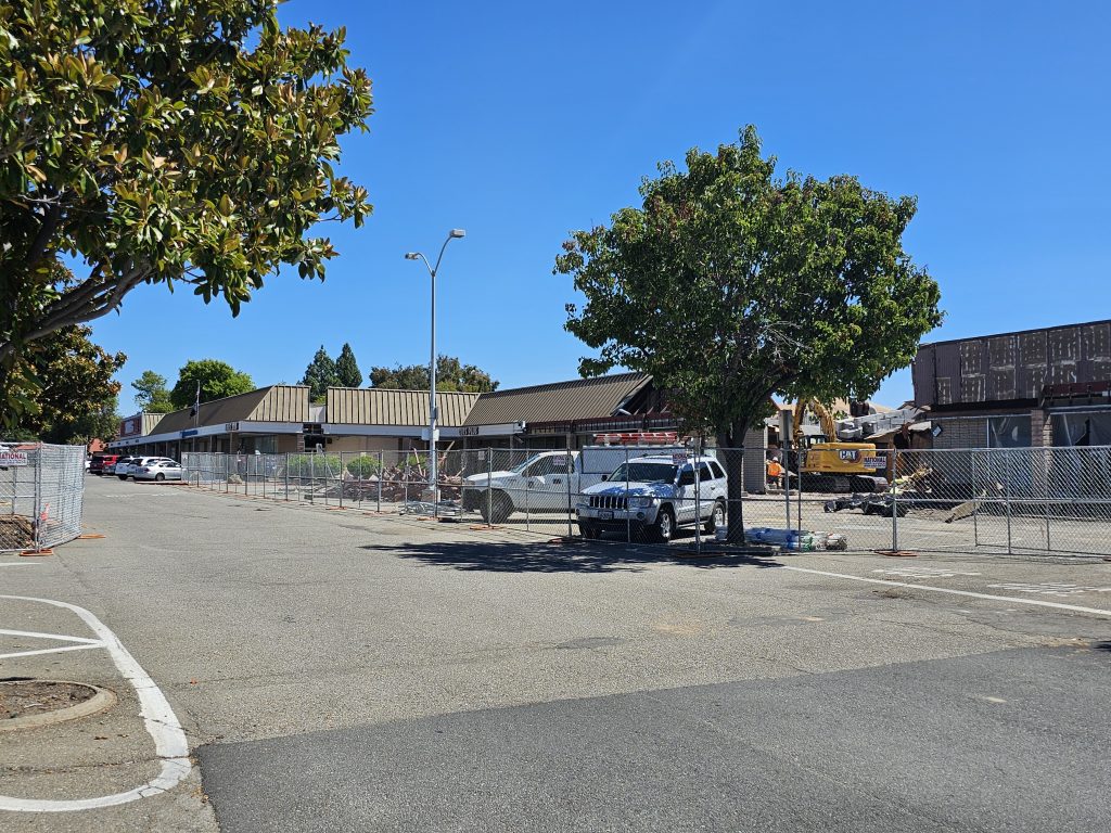 The shopping center, which is about four decades overdue for a makeover, is being demolished between the US Post Office and CVS. Staples, the Post Office, and CVS will remain open for the time being. The plan is to build a section in the middle nice enough to attract a grocery store. Thanks to skilled demolition experts, the process is being handled efficiently and safely to prepare the area for the new development.