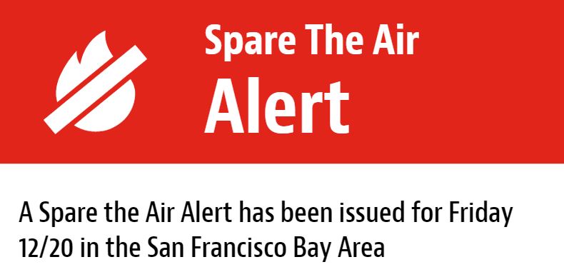 A spare the air alert has been issued in the Bay Area for Friday Dec.20.