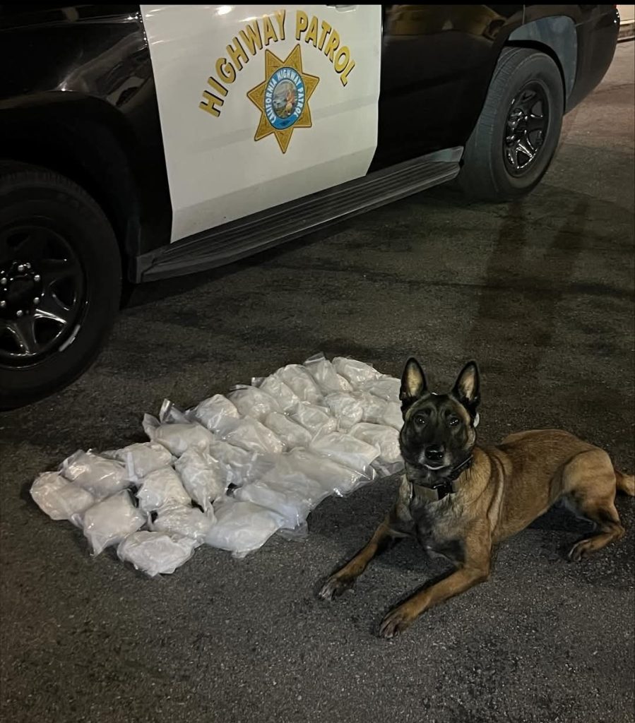 Late last month, a CHP officer pulled over a white Chevrolet Silverado on U.S. Highway 101 for a traffic violation. During the stop, K9 “Rae” alerted to the scent of narcotics coming from the vehicle. Officers searched the truck and discovered approximately 30 pounds of suspected methamphetamine. A CHP detective later obtained a search warrant for the driver’s home. K9 “Chip,” officers searched the residence and located an additional 10 pounds of meth hidden in a bag. The driver, 37-year-old Alan Duran, was arrested and booked on multiple drug charges.