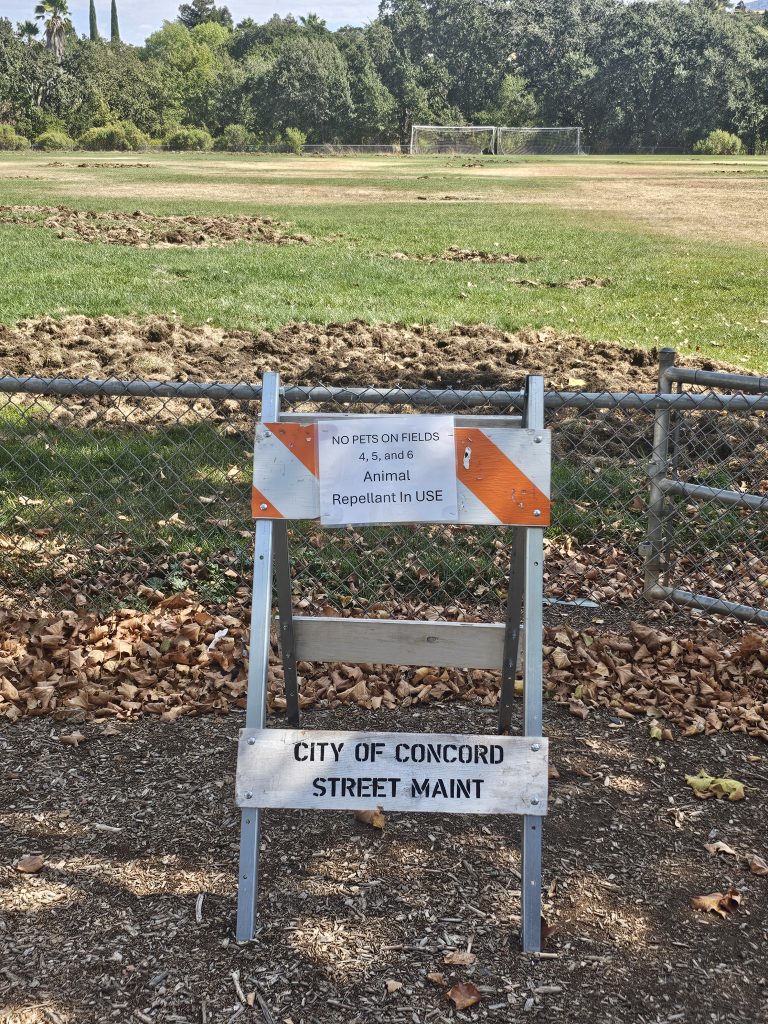 It was wild pigs that were tearing up the field searching for grubs. The city really needs to close the gate in front to keep people out except the HS kids who park there in the morning as over flow parking. Too many people use it as a dog park and never pick up there dogs poop.