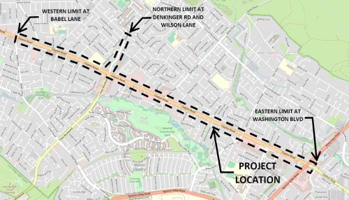 The Clayton Road Pavement Rehabilitation Project resumed this week with additional paving work. The contractor will pave the remaining four lanes on Clayton Road between Matheson Road and Washington Boulevard, along with Denkinger Road between Clayton Road and Wilson Lane. All remaining paving will occur during daytime hours: 7:00 a.m. to 2:00 p.m. for eastbound traffic and 10:00 a.m. to 5:00 p.m. for westbound traffic. Lane closures will be in effect during paving operations; however, at least one lane in each direction will remain open at all times. Once paving is complete, striping and signage work will begin. Construction on Clayton Road is expected to be completed by mid-February.