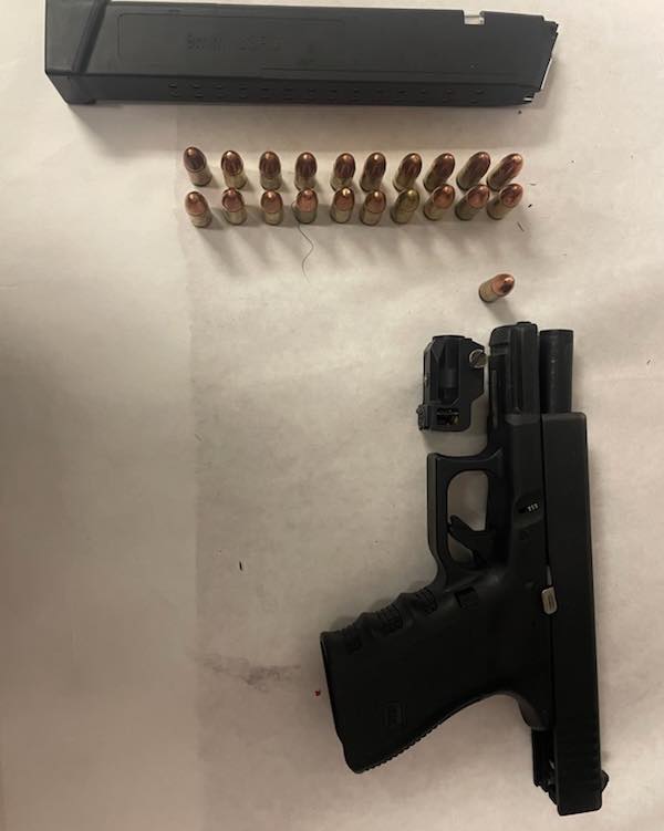 According to police, Officer Young was patrolling near a retail shopping area when he noticed a suspicious vehicle parked in a lot. As he approached, he saw a firearm magazine in plain view, prompting him to detain the occupants. A subsequent search of the vehicle uncovered an unregistered, loaded handgun equipped with a high-capacity magazine.